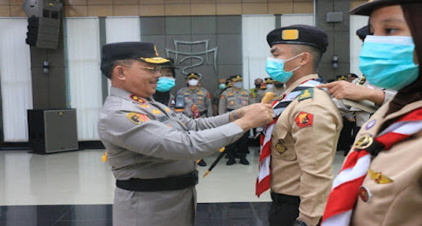 Kapolda Sumbar Lepas Kontingen Pertikaranas IV Tahun 2022 Ditandai Pemasangan Scraf Kepada Agel Pratama Siswa SMA Negeri 2 Lubuk Basung Kab. Agam